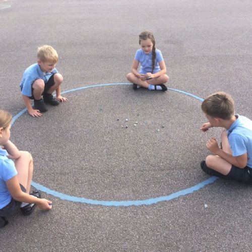 Year 2 had an entertaining afternoon playing marbles outside in the playground.