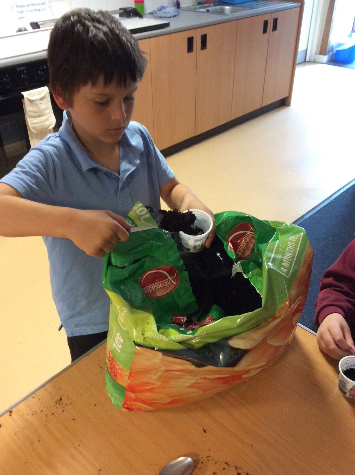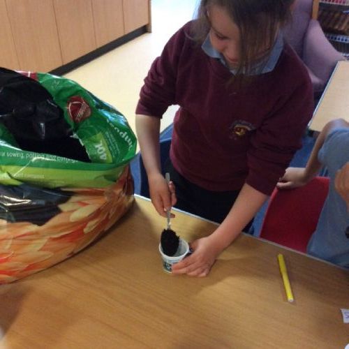 The children planted some sunflower and green beans seeds in order to create an experiment for later in the year.