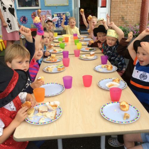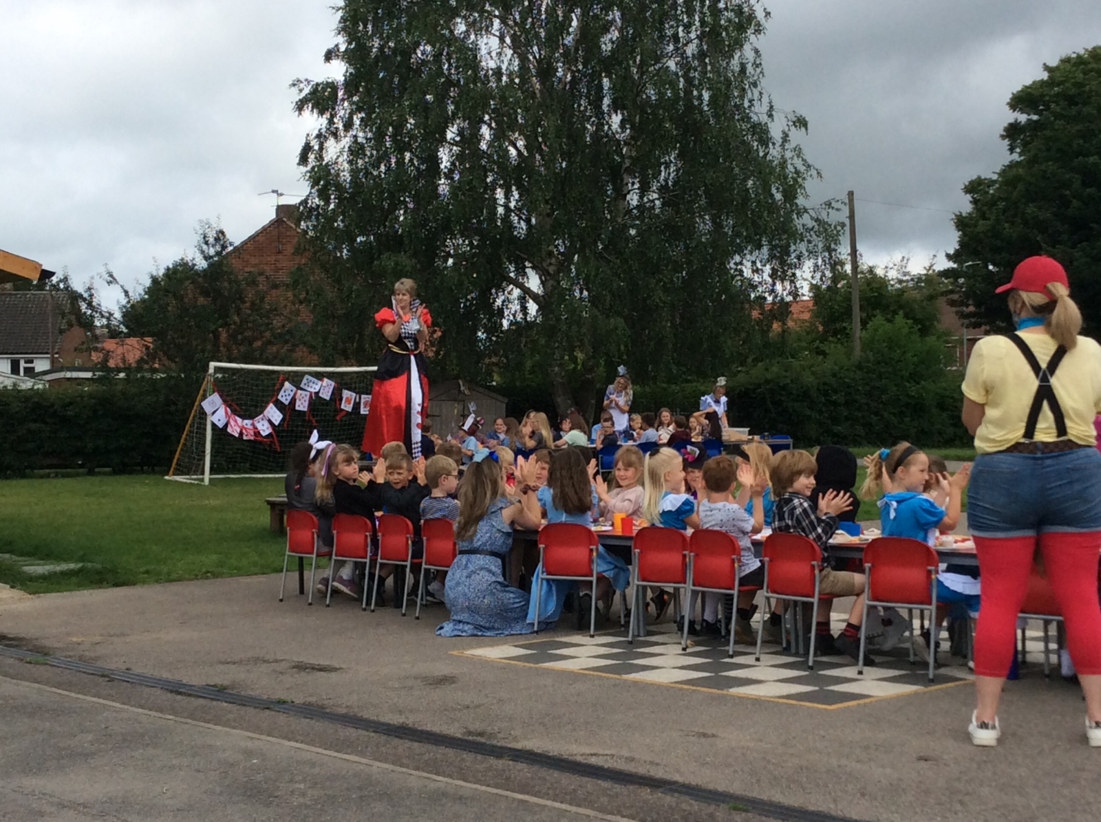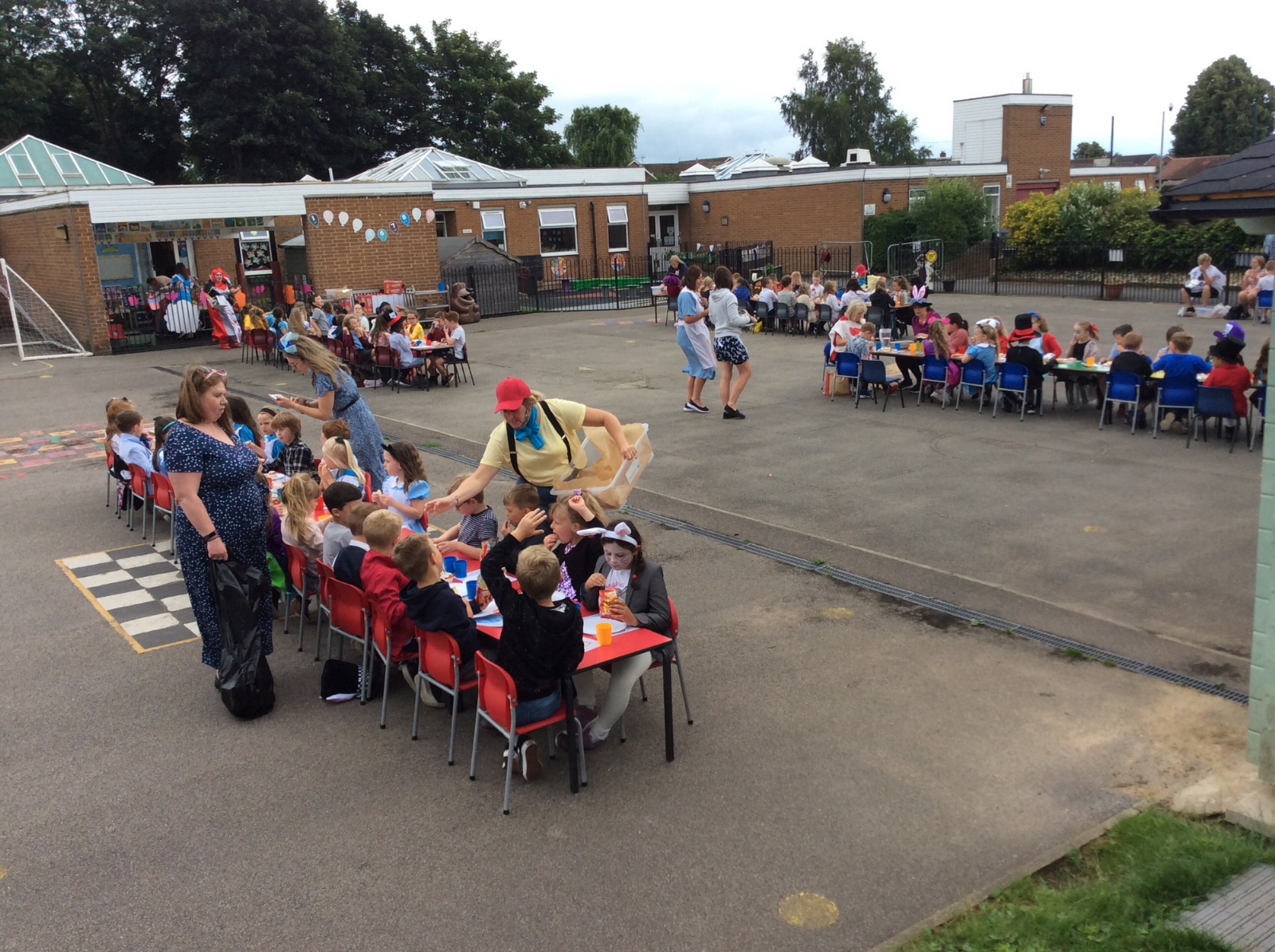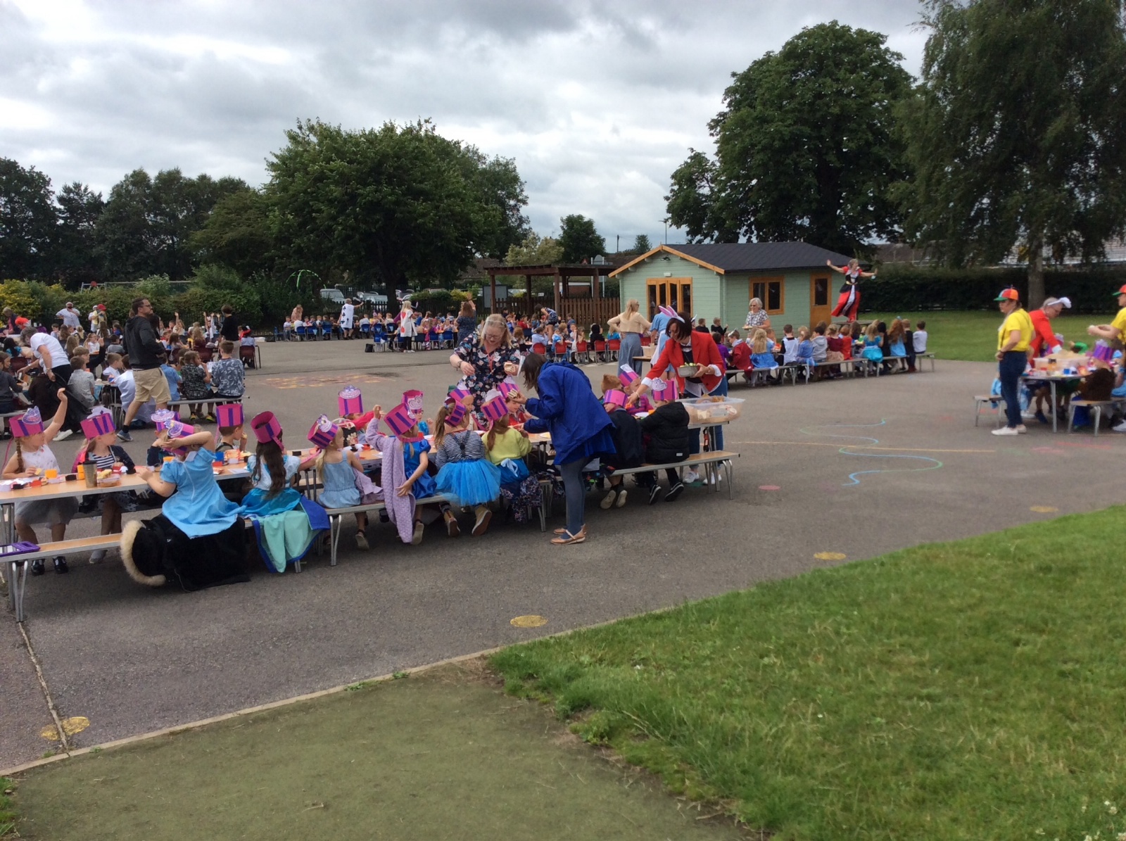 The children all had a socially distant tea party outside with sandwiches, cake and dancing.