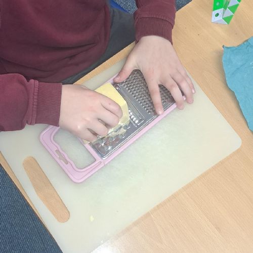 The pupils of year 3 and 4 made their own bread buns which they all ate as a cheese sandwich.