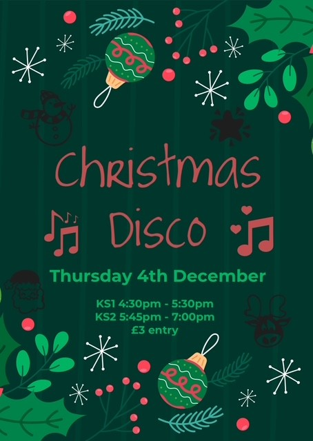 PTA Christmas Disco Reception &KS1 4.30 – 5.30 KS2 5.45-7.00pm |